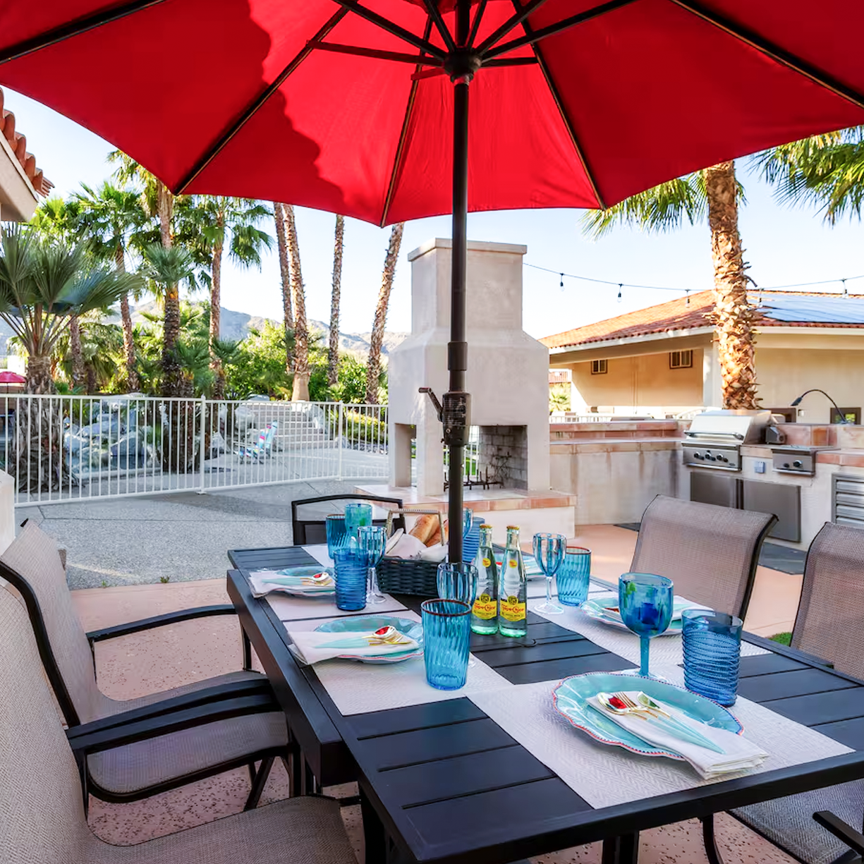 - Outdoor Kitchen & Fireplaces – BBQ with dual grills, bar seating, al fresco dining, and cozy fire features
